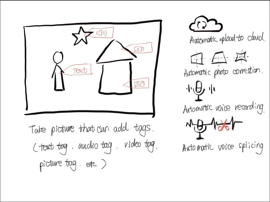 By synthesizing all the research and developing insights, I have identified problem areas that pose challenges for parents who wish to save their children's drawing with the accompanying explanatory videos together. Then I reframed all insight statements as How Might We questions to turn those challenges into opportunities for design and give me a perfect frame for innovative thinking: