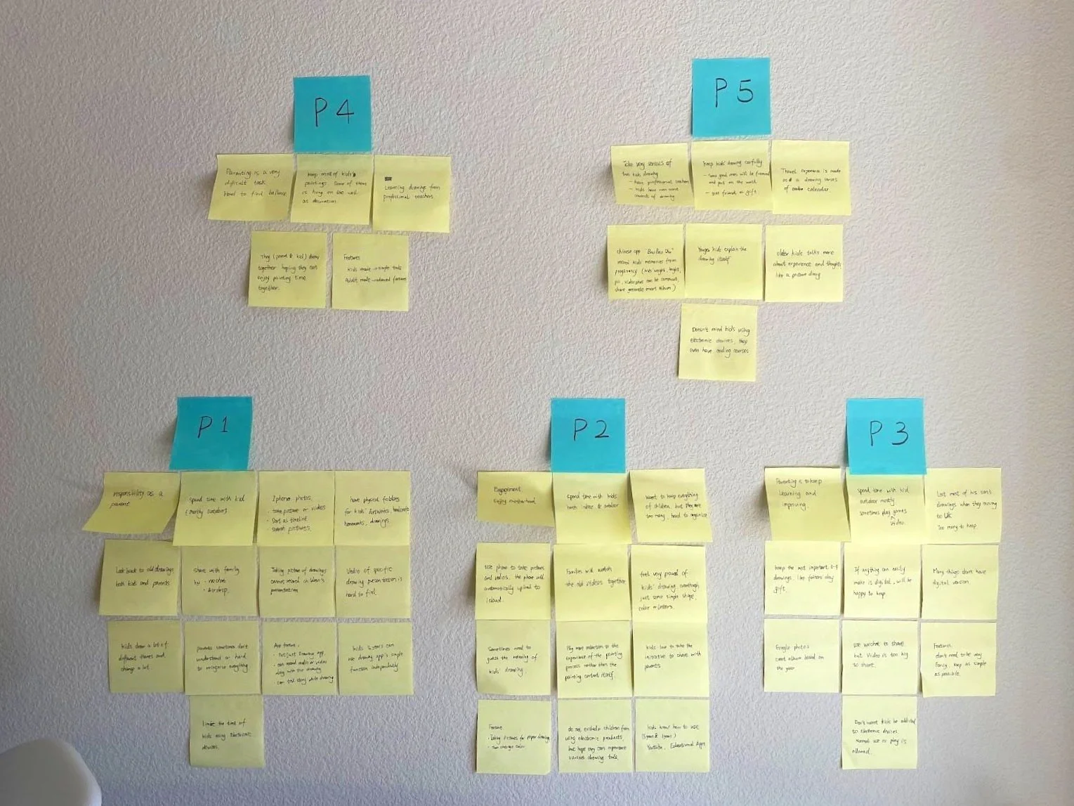 By synthesizing all the research and developing insights, I have identified problem areas that pose challenges for parents who wish to save their children's drawing with the accompanying explanatory videos together. Then I reframed all insight statements as How Might We questions to turn those challenges into opportunities for design and give me a perfect frame for innovative thinking: