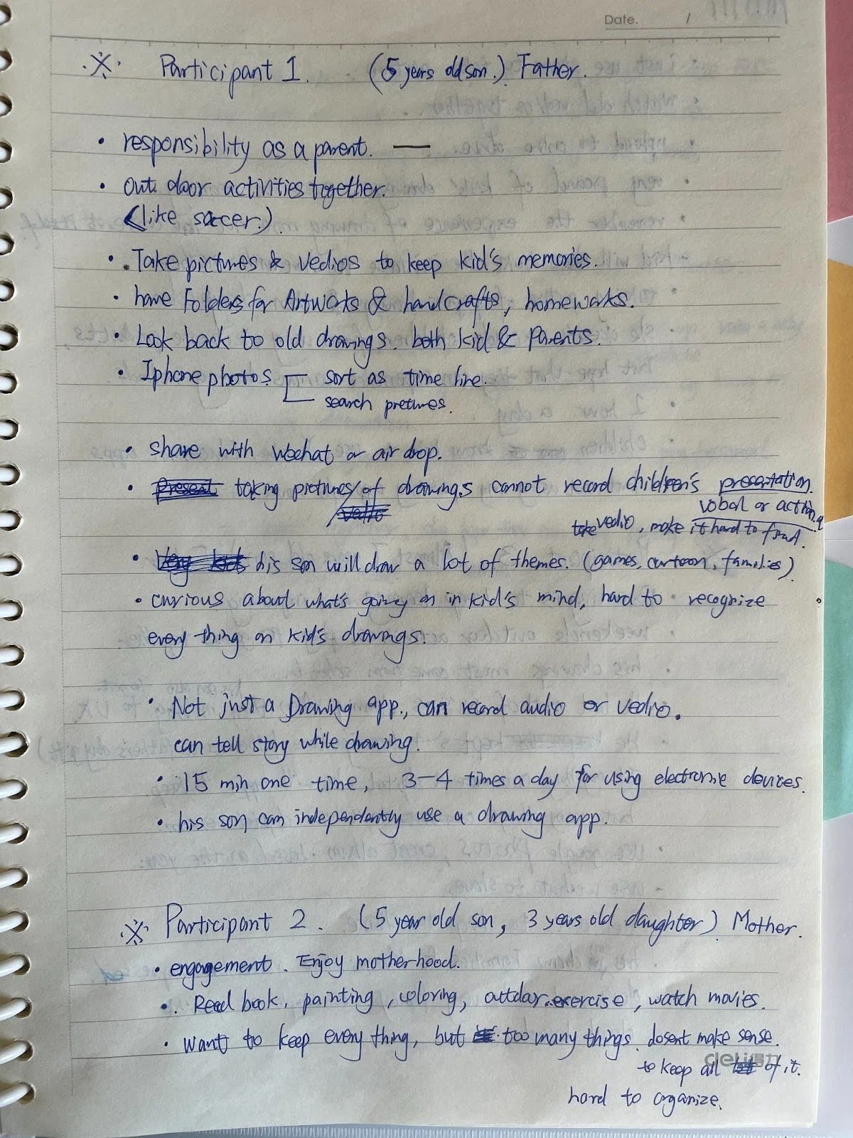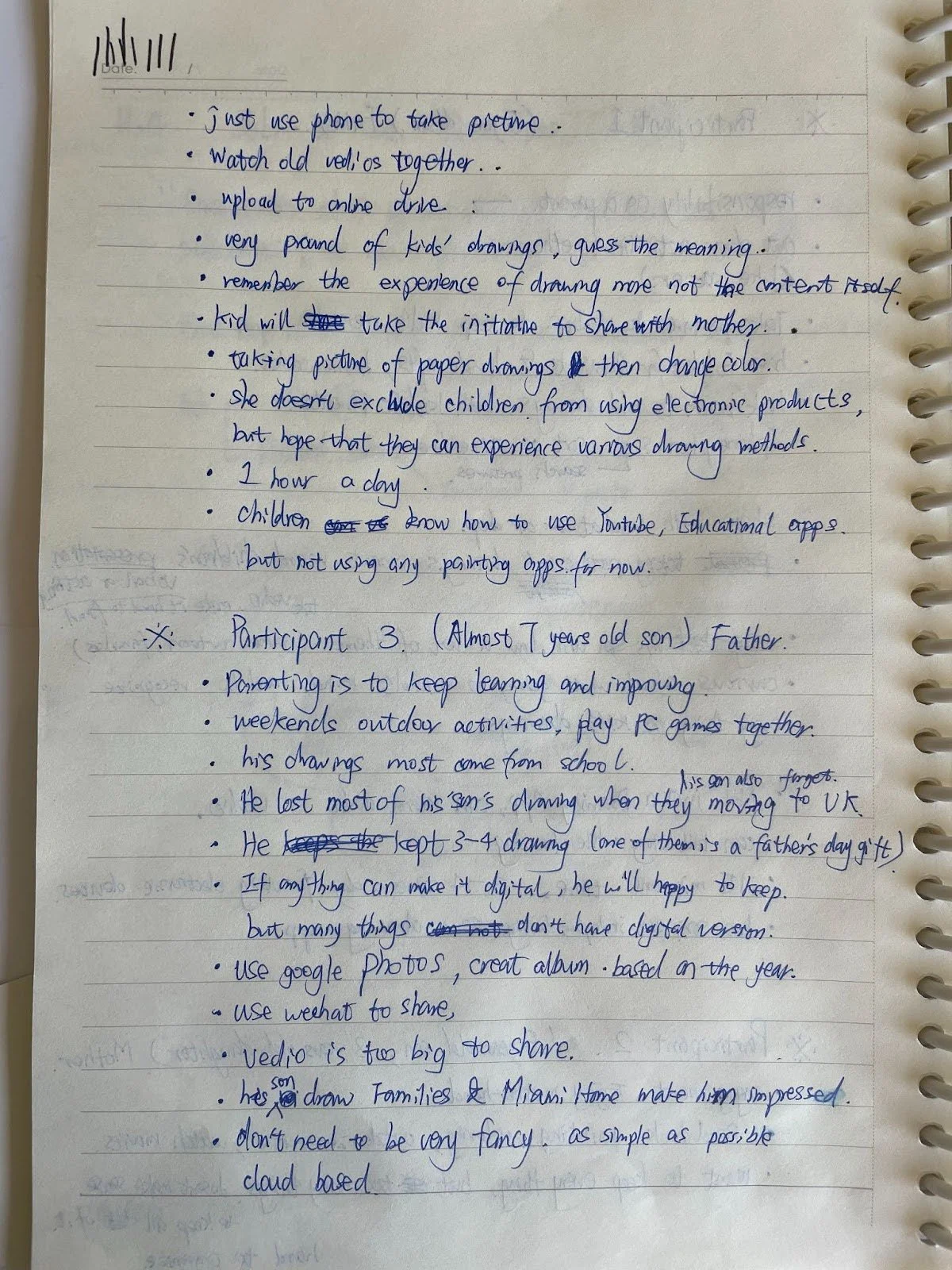 Through interviews, I discovered that 20% of the interviewed parents shared the same concern as I did – that merely taking photos cannot be considered a comprehensive way to preserve their children's artwork. All of the parents expressed the belief that there should be a better way and contributed many valuable insights after I described the intent and vision of the Drawing Journey app.
